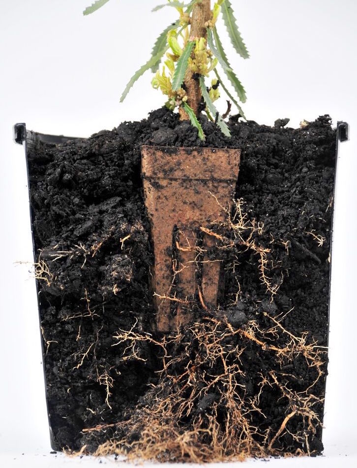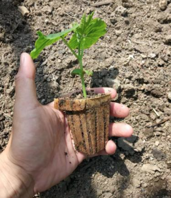 Field planting with net pots can be done under most weather conditions without hurting the roots or affect growth. From photos below can see the comparison of young plant bury underground with net pots and the one removed from conventional plastic pots.