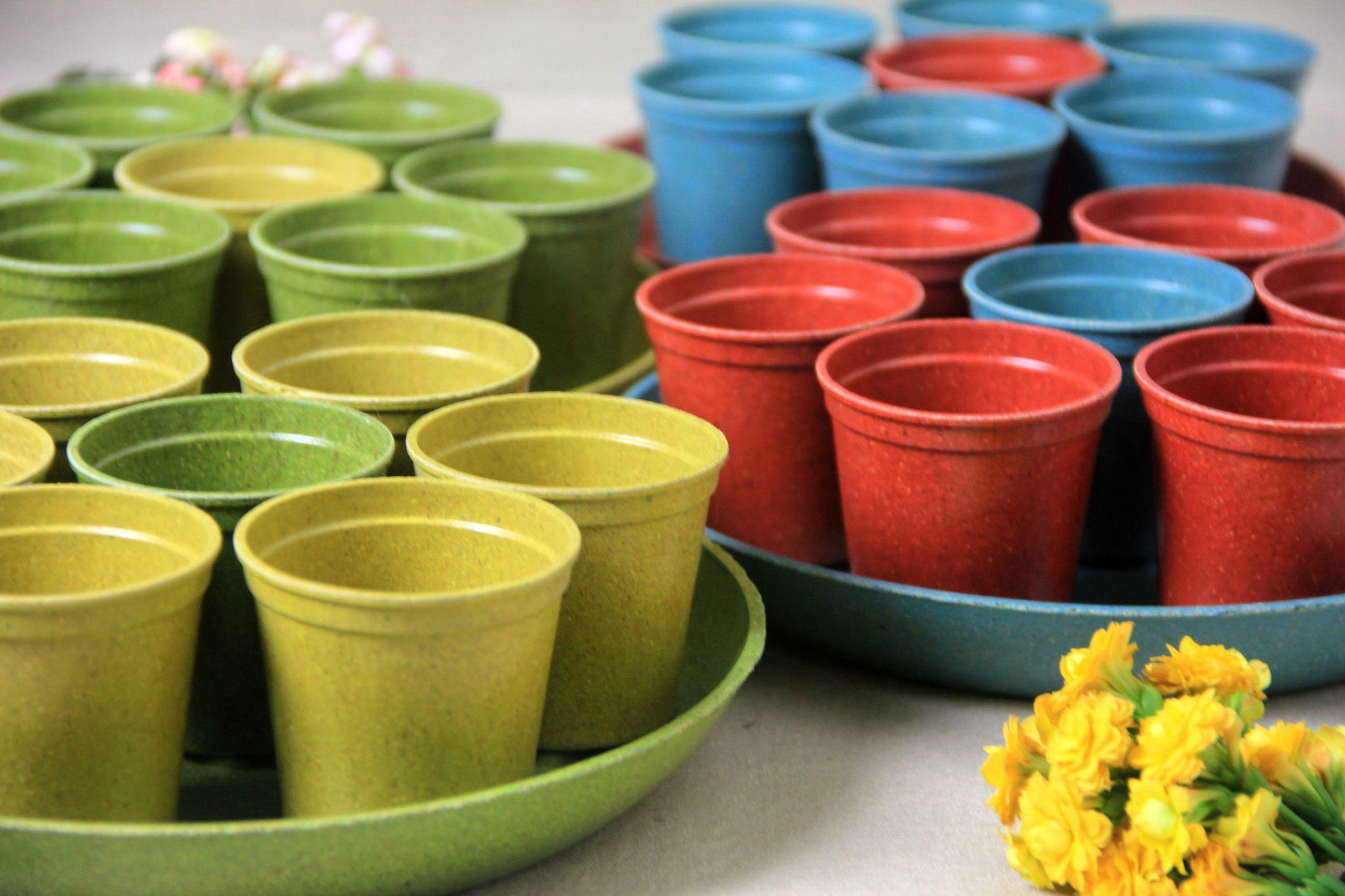 Dinnerware set made with coconut shell powder Dinnerware set made with rice hull powder